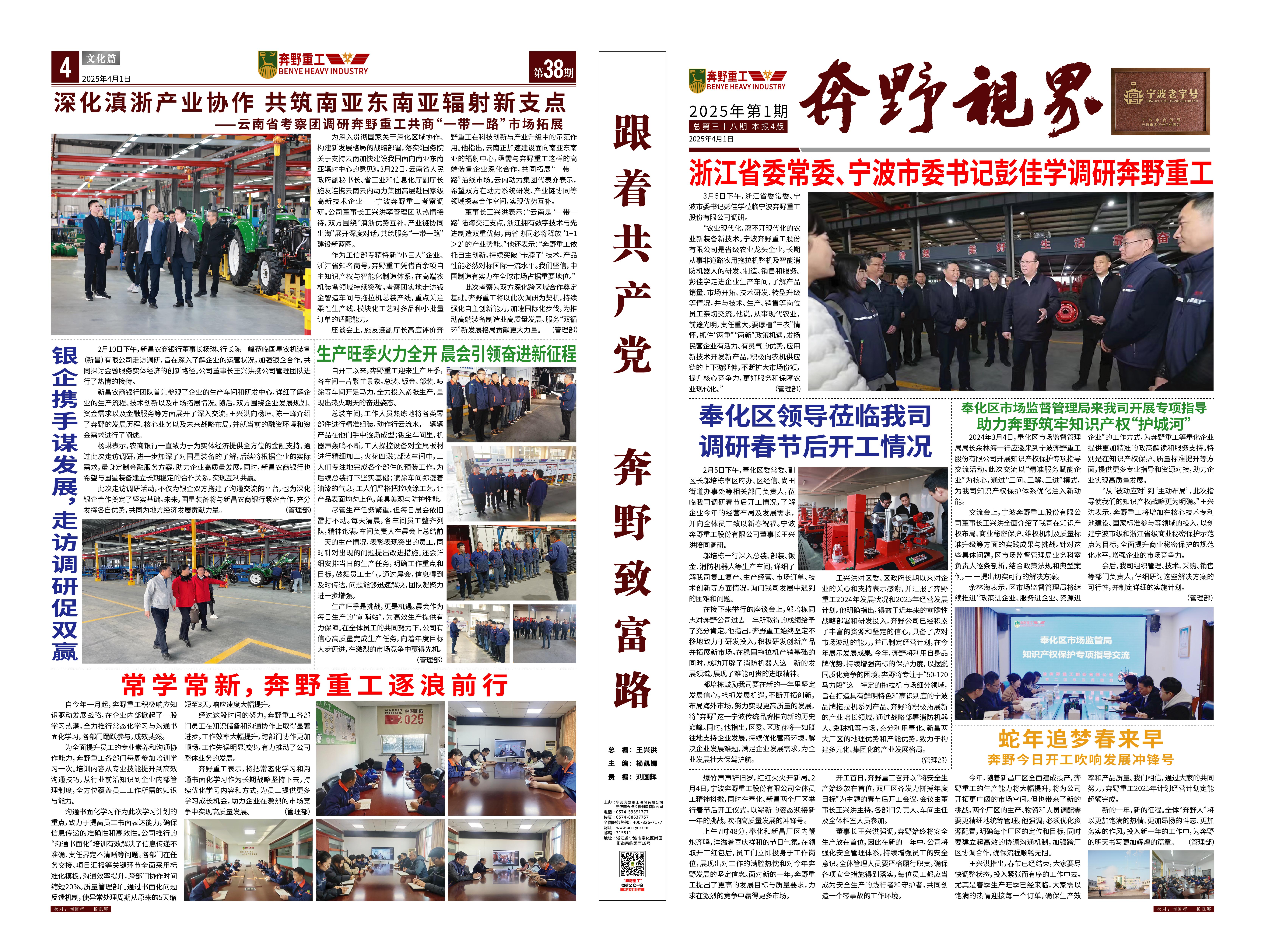 是一家非道路用農(nóng)用拖拉機(jī)整機(jī)及部件設(shè)備研發(fā)、制造、銷售、服務(wù)為一體的涉農(nóng)科研型生產(chǎn)企業(yè),專業(yè)生產(chǎn)寧波型奔野系列拖拉機(jī),是國(guó)家高新技術(shù)企業(yè)、工信部專精特新“小巨人”企業(yè)、浙江省知名商號(hào),寧波市級(jí)農(nóng)業(yè)龍頭企業(yè)、脫貧攻堅(jiān)-產(chǎn)業(yè)合作樣板企業(yè)、鄉(xiāng)村振興先進(jìn)集體,在寧波、新昌、吉林等地均設(shè)有生產(chǎn)基地,占地150多畝。公司現(xiàn)有技術(shù)骨干30多人,零部件自制化水平達(dá)到30%以上。公司目前擁有發(fā)明專利10余項(xiàng),實(shí)用新型專利、外觀專利、版權(quán)近50項(xiàng),擁有自主的知識(shí)產(chǎn)權(quán)保護(hù)品牌。公司所處的農(nóng)業(yè)農(nóng)機(jī)領(lǐng)域是國(guó)家重點(diǎn)關(guān)注和保障的、關(guān)乎國(guó)計(jì)民生的領(lǐng)域,得到國(guó)家和地方政府的大力支持,行業(yè)發(fā)展勢(shì)頭良好。